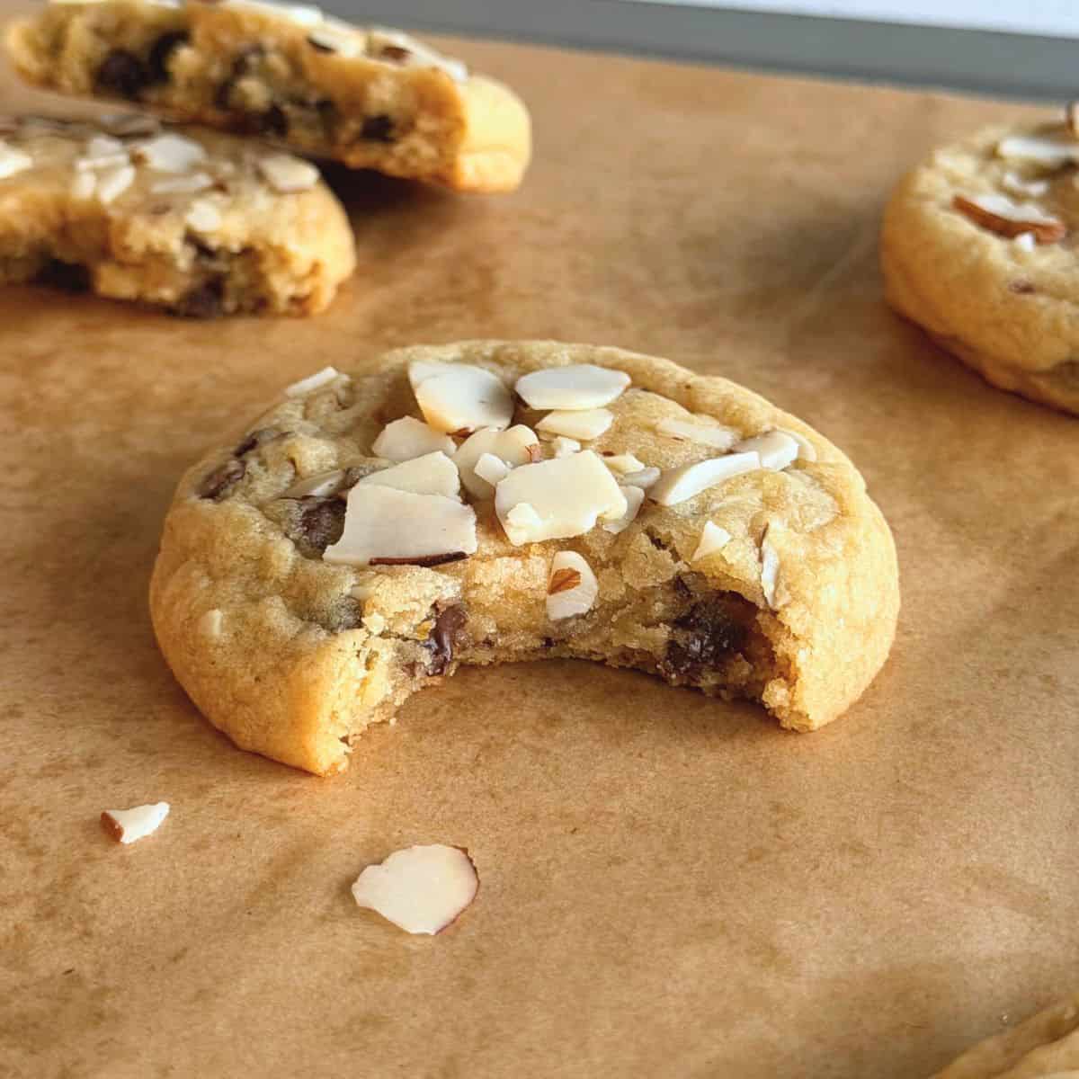 - Sliced almonds add a subtle crunch that complements the soft, chewy cookie texture. I like crushing them into smaller pieces before folding them in!