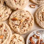 Place large scoops of cookie dough on a baking sheet about 2 inches apart. Bake until the edges start to tan lightly (9-12 minutes).
