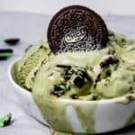 Whisk the remaining ½ cup of heavy cream into the cold mixture and churn in your ice cream maker per the manufacturer's instructions. After about 10-20 minutes, add the chopped mint Oreos to the ice cream maker and continue churning until the ice cream is thick.