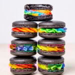 Pair the shells up and then pipe rainbow buttercream onto half of them. Sandwich the shells together and enjoy!